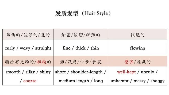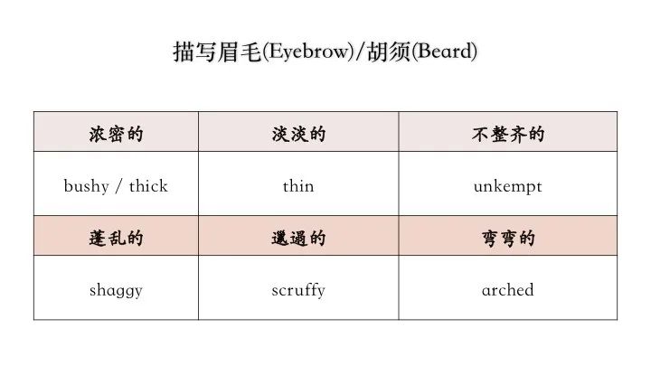 4. 如何描寫頭發(fā)、眉毛、胡須