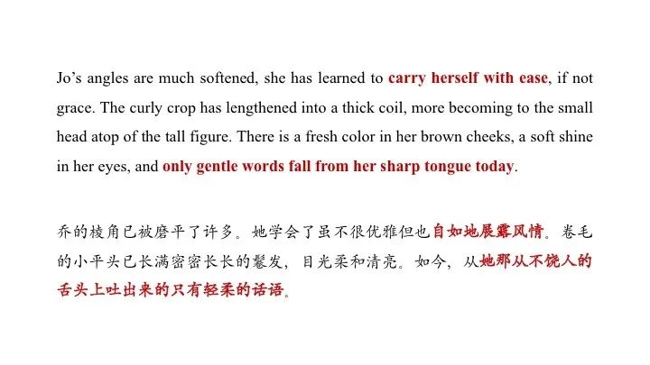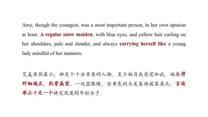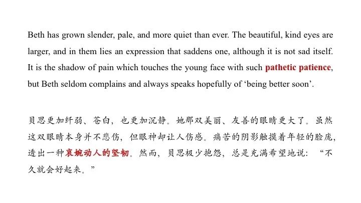 然后以經(jīng)典名著《小婦人》中段落舉例,