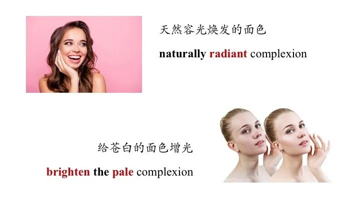 1. porcelain(/?p??s?l?n/)指“瓷器”,porcelain skin可以指皮膚像瓷一樣有著透亮的白色。