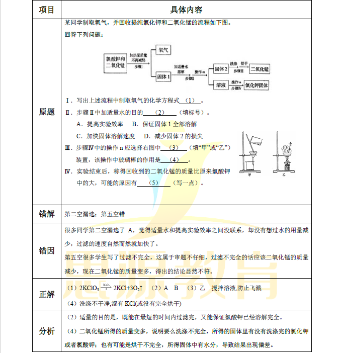 這道題與前一道題不同,要完全熟悉化學(xué)實(shí)驗(yàn)中的每一個(gè)操作步驟和目的。而特別需要注意的是,在填空中的選擇題,一定要看清每一個(gè)選項(xiàng),確定自己沒有漏選。