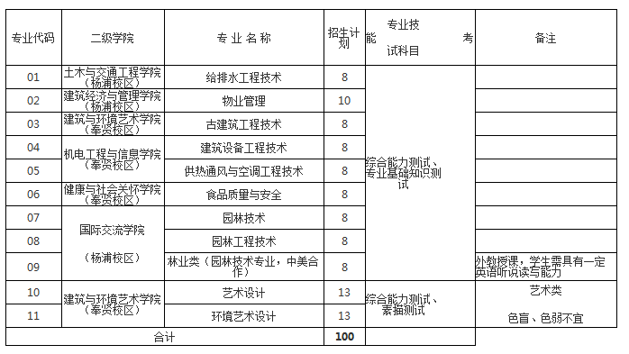 建筑與環境藝術學院、機電工程與信息學院、健康與社會關懷學院、就讀校區為奉賢校區;土木與交通工程學院、建筑經濟與管理學院、國際交流學院就讀校區為楊浦校區;具體就讀校區以錄取通知書為準。