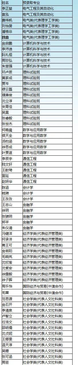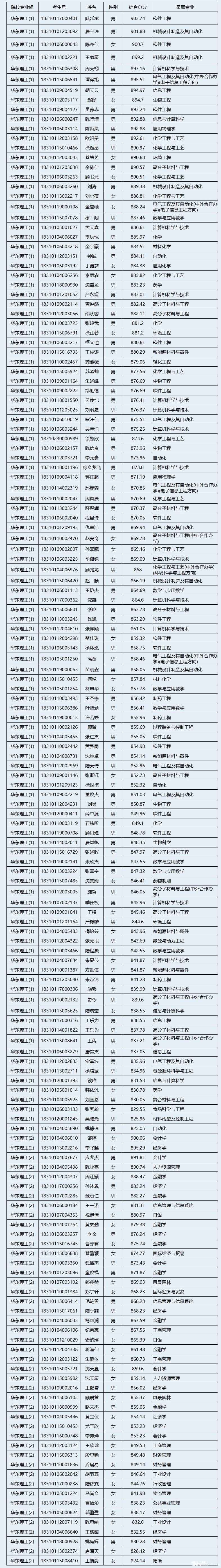 華東師范大學2018年綜合評價批次錄取名單公示如下表(按考生號排序):