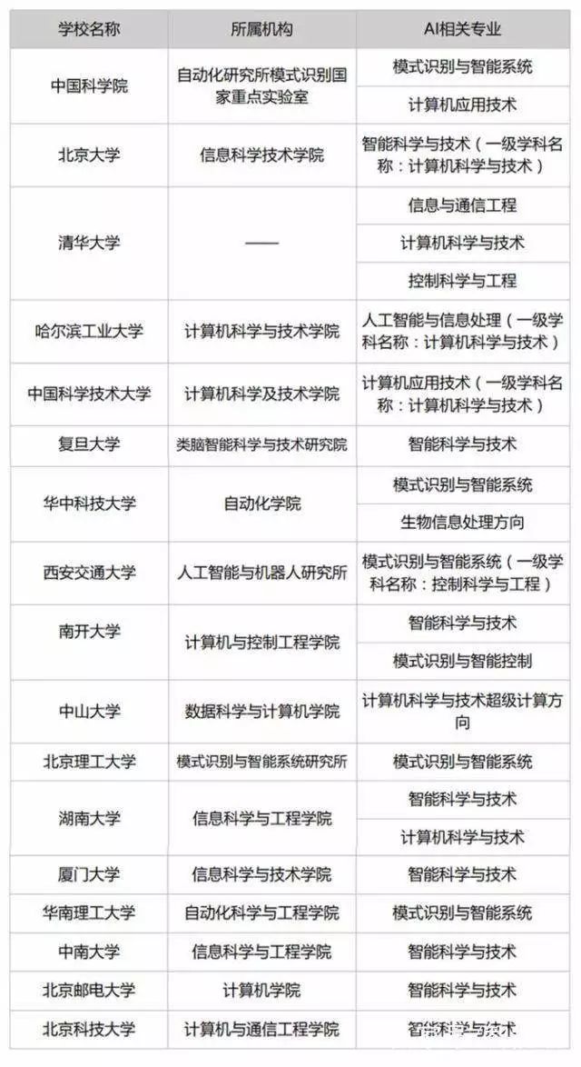 同時,國內眾多985、211大學先后建立了以人工智能相關專業課程: