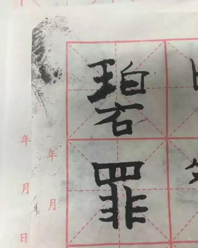 如上圖中的作品,只要出格子,或者沒有居中,都要扣分。