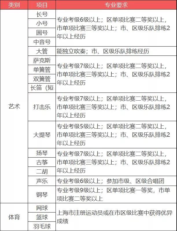 對(duì)有以下藝術(shù)、體育特長(zhǎng)的學(xué)生優(yōu)先錄取: