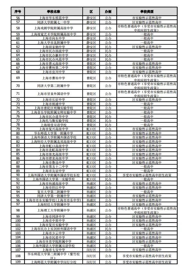 上海市教育考試院昨日公布2019年上海市高中招生學校名單,詳情見下圖↓
