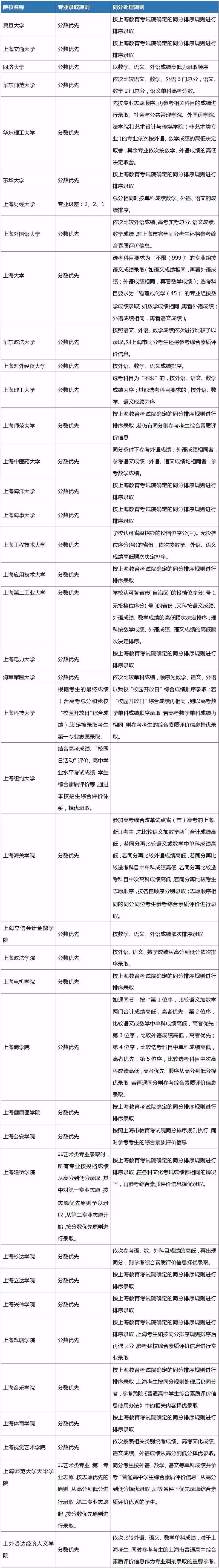 以下為所有上海高校2019年專業錄取規則和同分處理規則匯總(非藝術類)。