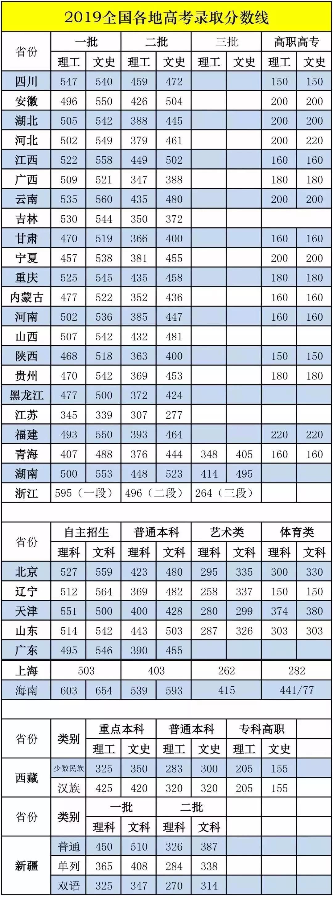截至目前,全國31省份的2019年高考已經完全出爐!快來看看你們省份的高考分數線高嗎?