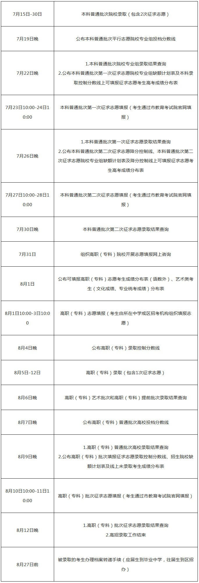 (1)7月15日-7月18日,市教育考試院將與招生高校開展模擬投檔。