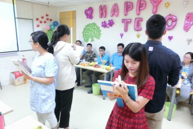 下午13:30分,徐匯校區中學生部舉行了隆重的教師節慶祝活動。邱院長率先致辭,表達了對思源全體教師的祝福,緊接著圍繞著感謝教師這一主題,全體教師進行了很多有趣的互動。
