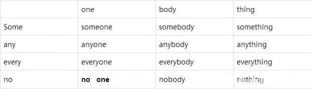 一、復合不定代詞的定義:由some,any,every,on加上one,body,thing構成