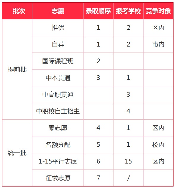 上海志愿批次分為提前批次和統一批次兩個批次。中考志愿填報,在整個初三中可以算是最重要的一件事。說難也不難,說簡單也不簡單,因為它是基于區內競爭、受考生成績走向影響的。