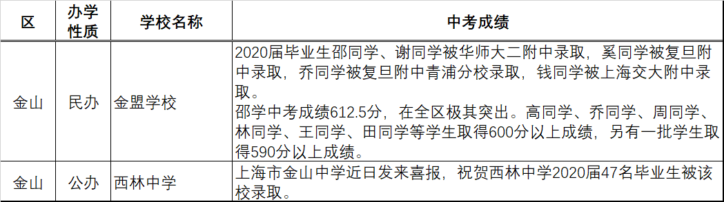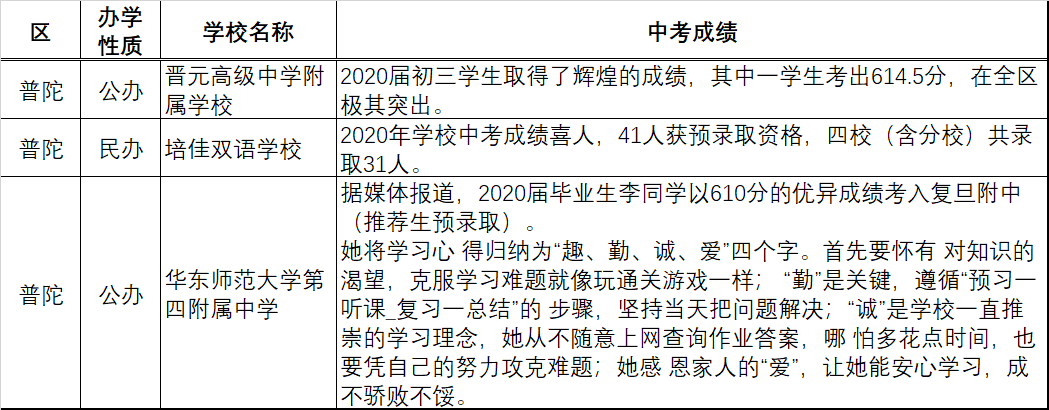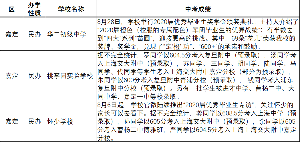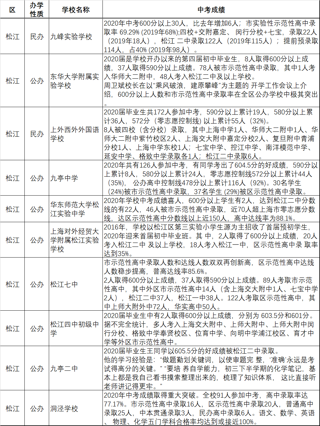 中考平均分在590+以上的有9所初中,3所都在楊浦區。楊浦區的考生可以說非常幸運了!除了老牌頂尖HY,LS,ZJ等初中,郊區的九峰實驗(松江),嘉華二今年中考表現也非常優秀。