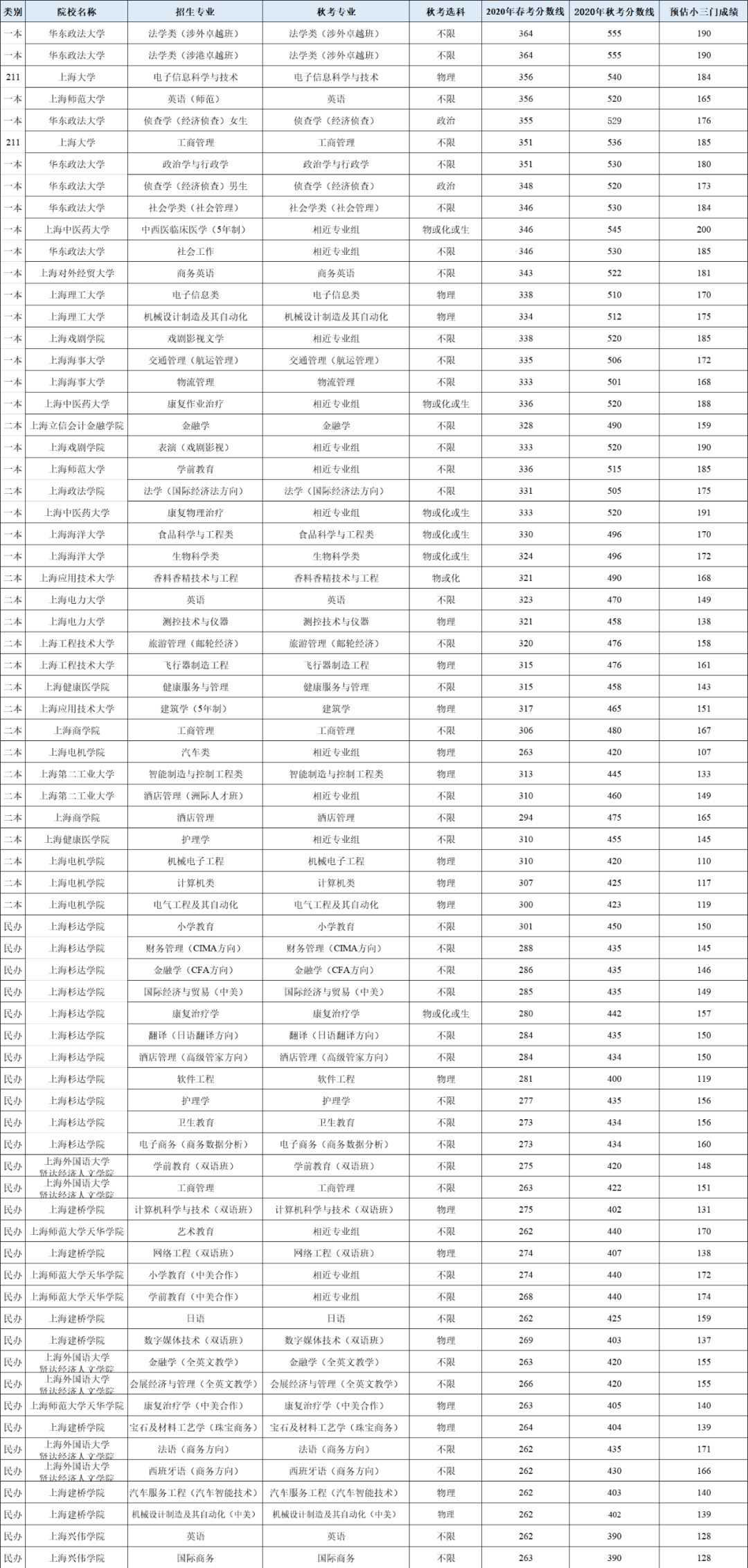 最后一列的小三門預估分是我們按照以往經驗和參考分數線數據預測的,有些專業在春考中的預估小三門分都在180分以上,也就是說如果秋考同樣保證和春考一樣的大三門成績水平,那剩下的等級考三門小科目至少都考到B以上,這對于中下游段成績的考生而言也是有一定壓力的。
