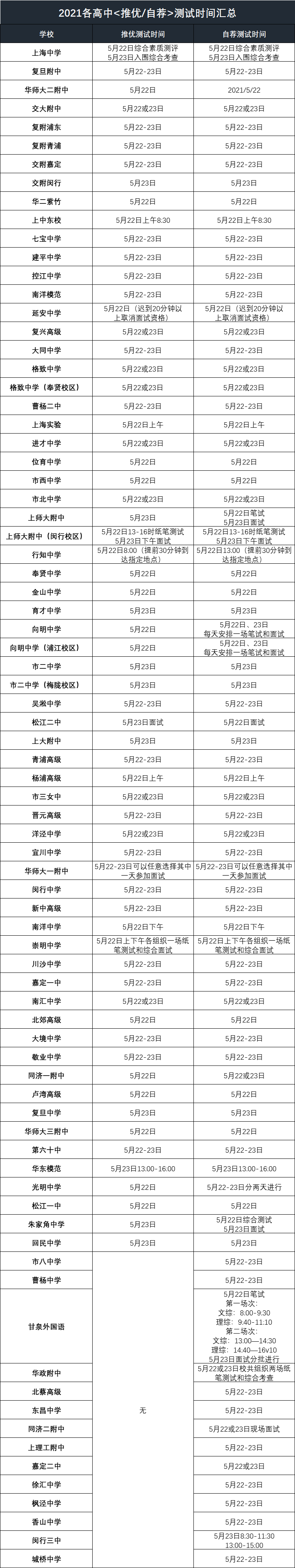 先來看看各高中的測試時間安排