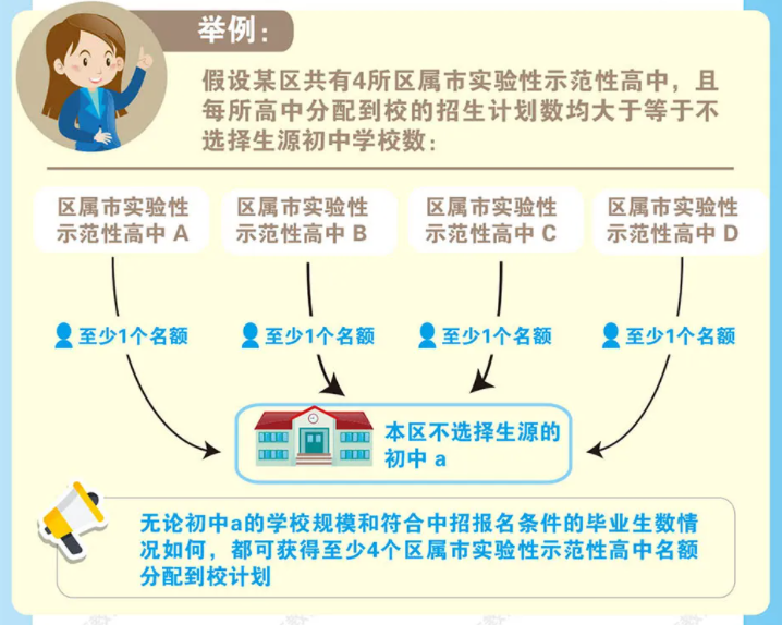2022年新中考后,名額分配占市重點高中招生計劃的50%-65%。名額分配將是市實驗性示范性高中最主要的招生錄取方式。