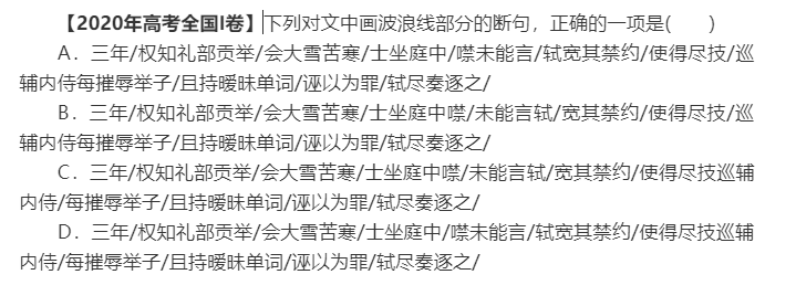 當前斷句題主要有兩種考查形式:選擇題、主觀斷句題。如下: