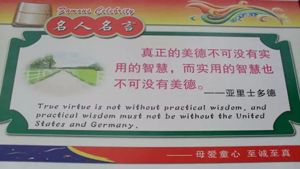 如果不算United States和Germany的笑點,這段英文語句還算通順,不過語義和原文依然是有出入的,比如第一句是說“真正的美德中是必有實用智慧”,而不是“不可沒有實用智慧”。