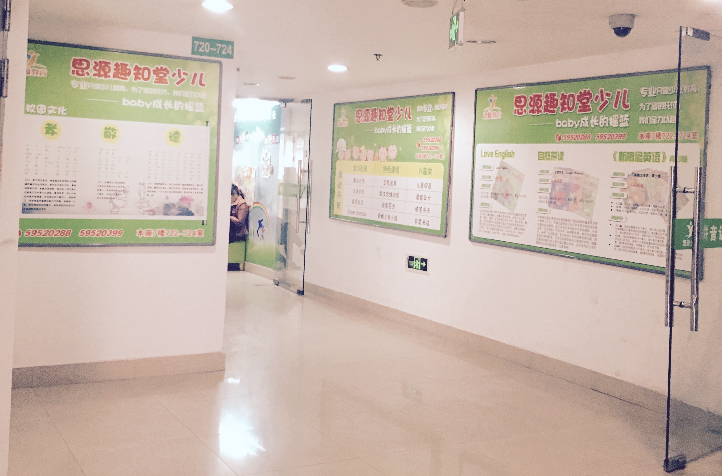 七樓基本都是培訓機構。有外語的,舞蹈的、繪畫的。一出電梯,幾份思源教育的課程海報映入眼簾。一下子牽引了我們的視線。推門進去,長相甜美的前臺美眉正沖我們微笑。