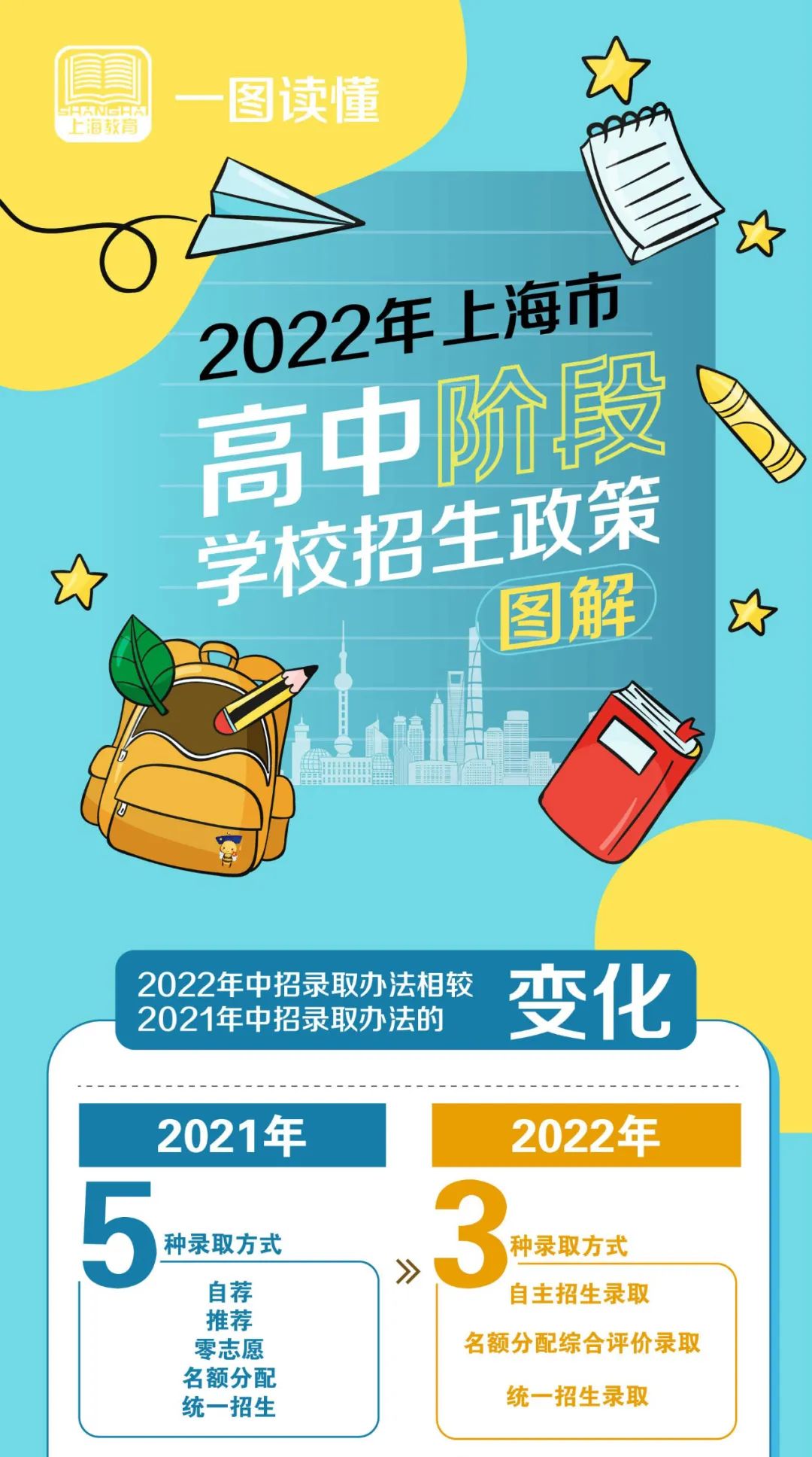 為探索建立初中學(xué)業(yè)考試與綜合素質(zhì)評價相結(jié)合的多元招生錄取機(jī)制,《中招若干意見》明確,2022年本市中招錄取方式由原來的5種(自薦、推薦、零志愿、名額分配和統(tǒng)一招生)調(diào)整為3種,包括自主招生錄取、名額分配綜合評價錄取、統(tǒng)一招生錄取。各批次志愿均在考后填報,自主招生錄取(公辦普通高中)和名額分配綜合評價錄取劃定同一最低投檔控制分?jǐn)?shù)線。