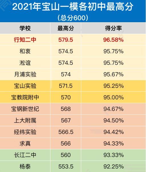 宜川中學附屬學校最高579。