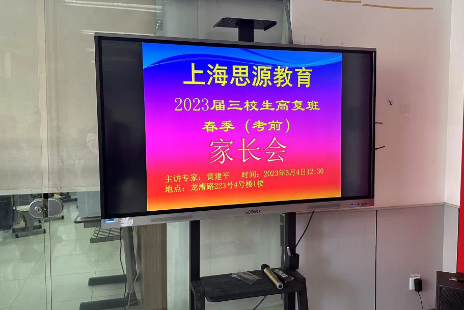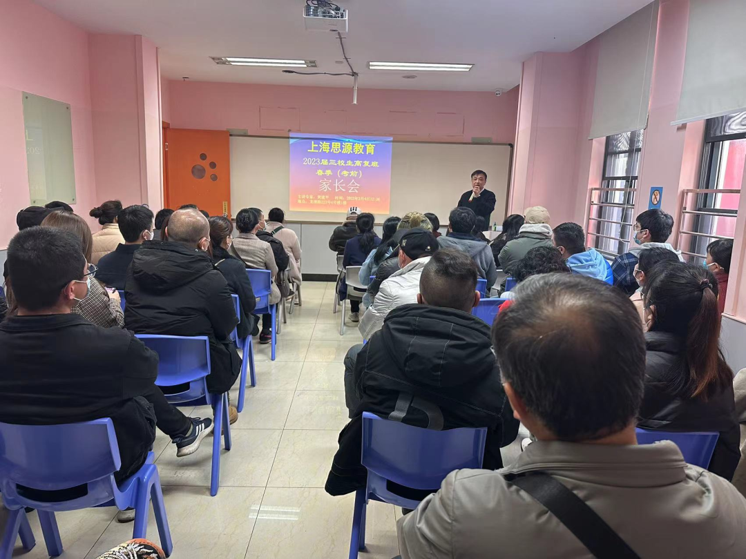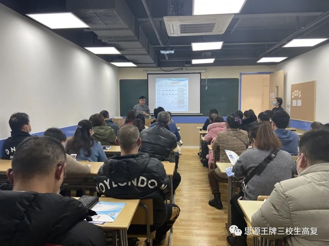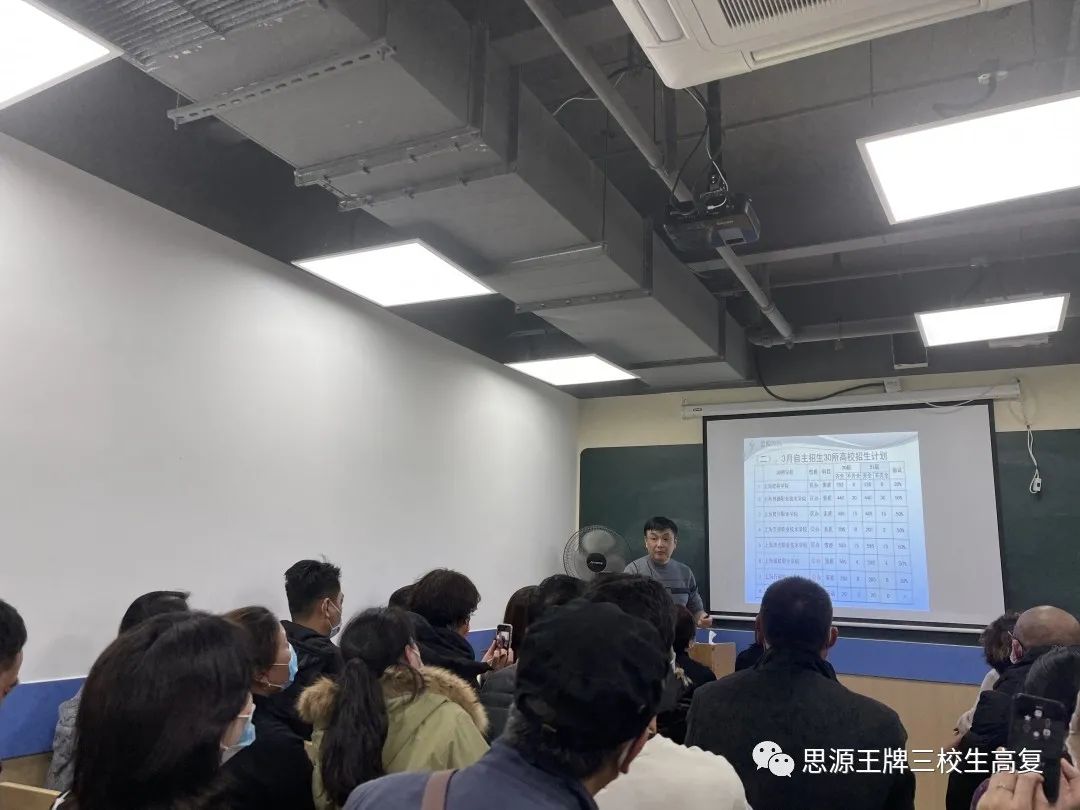 3月6下午,思源教育2023屆三校生高復班春季(考前)家長會在徐匯校區、龍漕路校區、浦東校區先后舉行。會議由思源高復專家黃老師主講,首先代表學校感謝家長一直以來對思源的大力支持,與家長通報了學生春季的教學情況和在校期間的綜合表現,此次家長會主要是針對即將到來的三月考,從專業的角度給家長和學生們填報志愿的方向和建議。