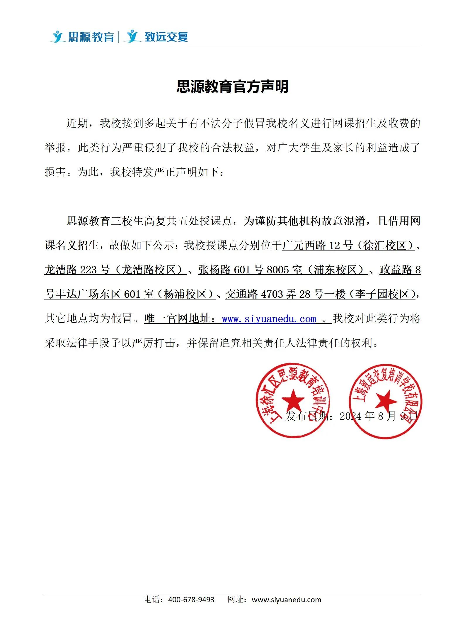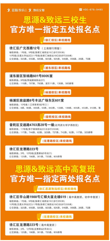 (詳情請點擊) 徐匯區廣元西路12號(工商銀行隔壁)400-678-9493 思源教育龍漕路校區