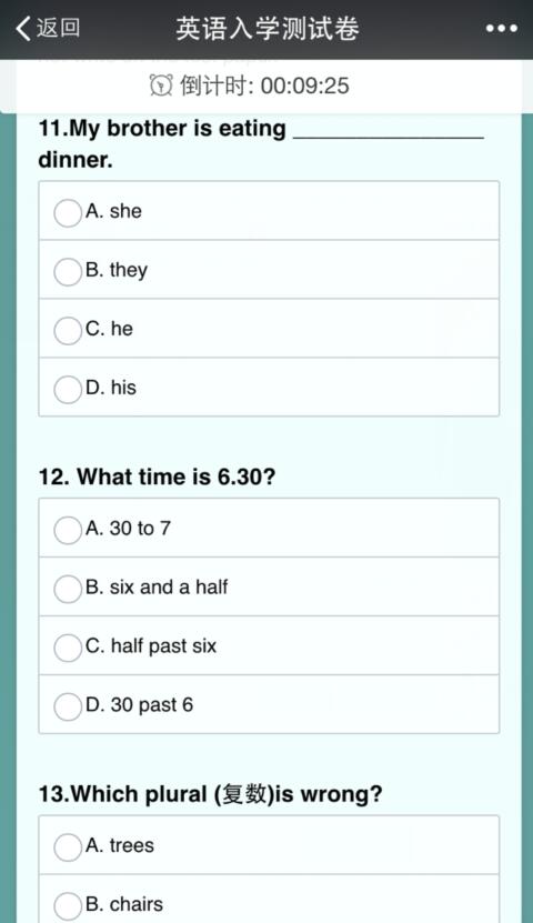 點擊下方菜單“英語測試”即可進入測試頁面。