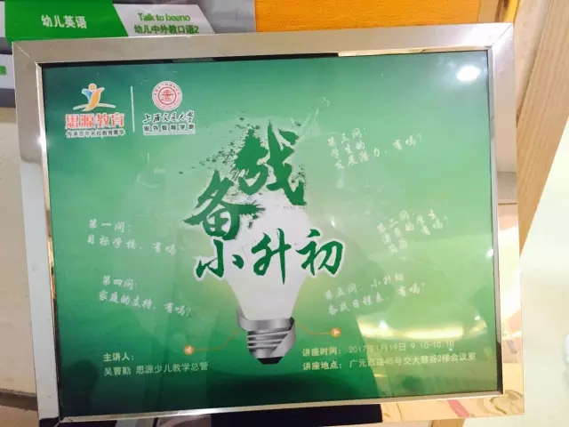 而陪同孩子一起前來的家長在等待的時間里,也可以到專門為他們準備好的區域休息,同時在講堂開始的第一天,即1月19日,上午9:10-10:10,思源教育也根據年齡分布的不同,為家長輔以安排他們關心的相關講座——《備戰小升初》,講座主講人為思源少兒教學總管吳曹勤吳老師。