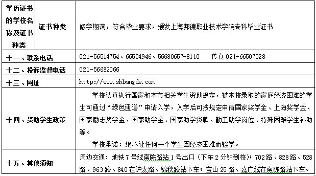 主頁 > 資源中心 > 高考頻道 > 2015年上海邦德職業技術學院專科層次招生章程