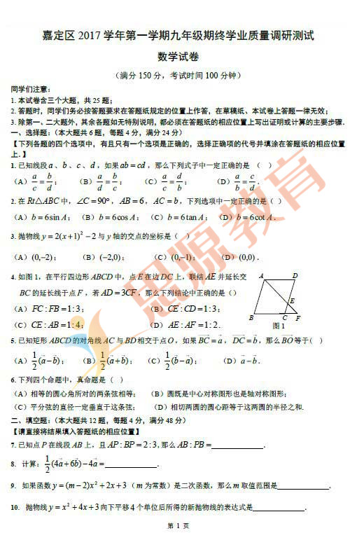 2018嘉定上海一模考開考,思源教育小編第一時間整理了數(shù)學(xué)考卷的真題和答案解析,分享給大家。其他區(qū)的同學(xué)們可以參考嘉定區(qū)的考點和難度,做最后的沖刺復(fù)習(xí)。
