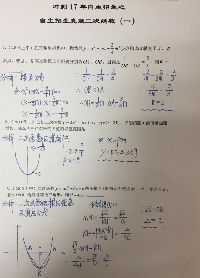 四大名校八大金剛,作為上海最好的高中學(xué)校。一直備受追捧和關(guān)注。一模考后,很多“牛蛙”就將全力沖刺自招考,思源教育小編將近年來(lái)的數(shù)學(xué)自招考真題按知識(shí)點(diǎn)分門(mén)別類(lèi),方便大家復(fù)習(xí),今天給大家?guī)?lái)的是二次函數(shù)專(zhuān)題。